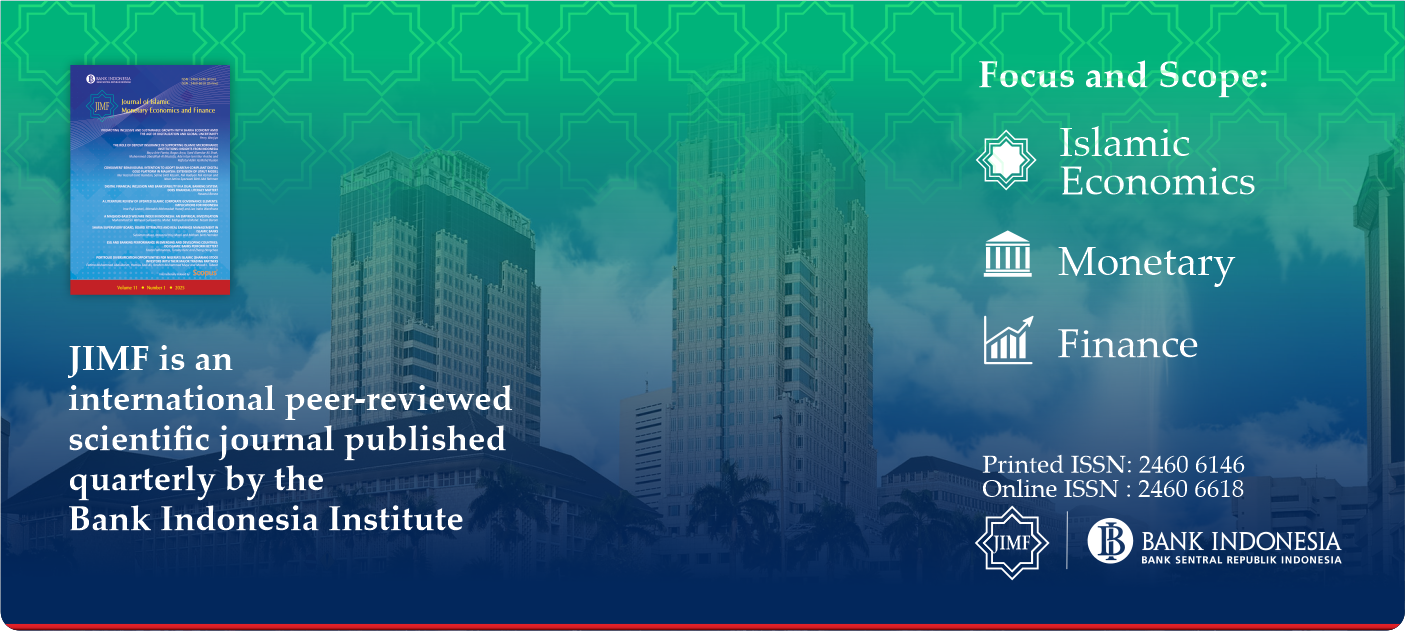 Journal of Islamic Monetary Economics and Finance (JIMF) is an international peer-reviewed journal published quarterly by Bank Indonesia Institute, Bank Indonesia (Central Bank of Indonesia). JIMF publishes important research contributions to a wide range of Islamic economics, monetary, and finance including work along empirical, methodological and theoritical lines. The topics covers but not limited to the followings: microeconomics; finance; financial markets; macroeconomics; economic growth and development; international trade; monetary policy; money demand and money supply behaviour.